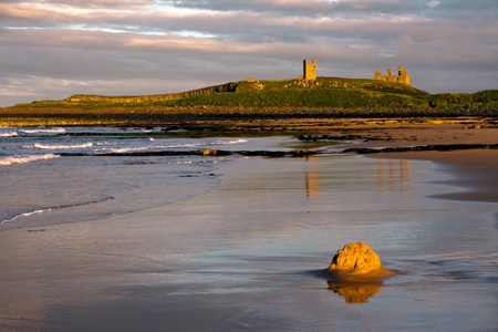 Dunstaburgh Castle at sunset from the beach