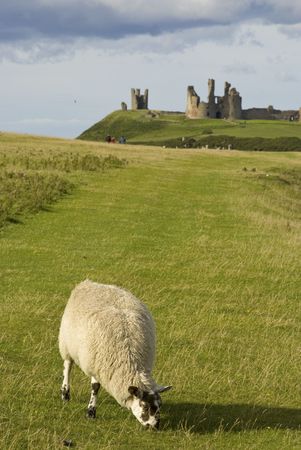 Dunstanburgh Castle on the coast of Northumberland in northern England