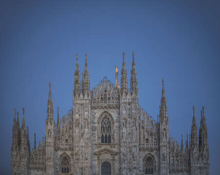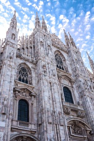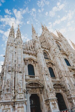 Beautiful view of the ancient Duomo Cathedral in Milan in Italy. It is one of the most popular tourist attractions in Italy.