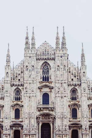 Milan Cathedral, Italy. Gothic style marble church facade.
