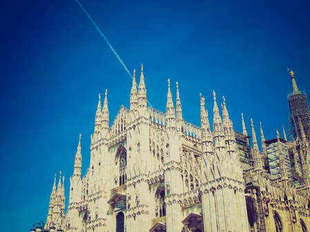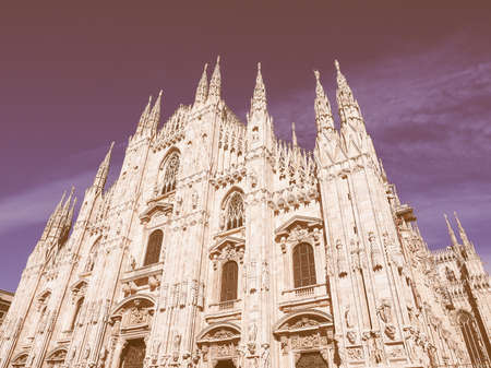 Vintage looking Duomo di Milano gothic cathedral church, Milan, Italy