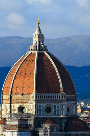 A closeup shot of Santa Maria di Fiore Cathedral's huge dome in Florence, Italy
