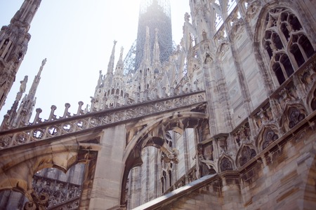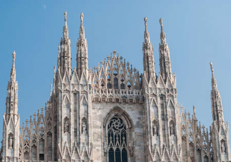 Gothic architectural fragment of the famous Duomo cathedral in Milan city in Italy