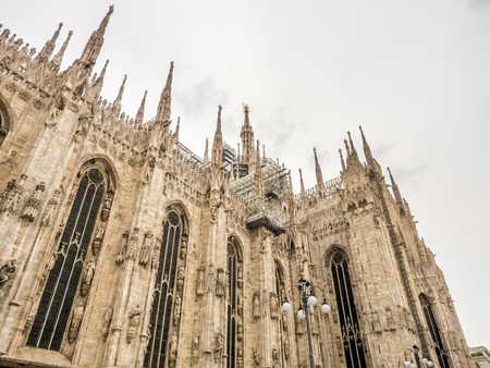 Exterior architecture of Milan Cathedral, known as Duomo di Milano, one of the largest churches in the world.