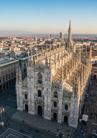 Aerial view of Duomo di Milano in Milan, Italy