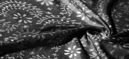 black silk fabric with flower pattern, very soft, versatile. Perfect for designs, your projects and more. Background texture,