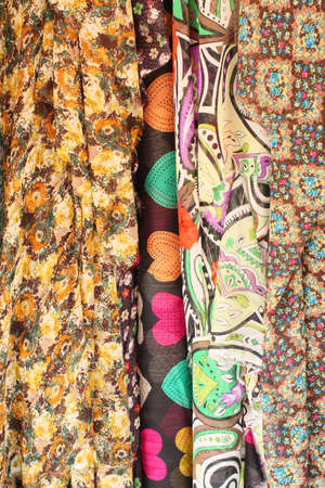 Colorful scarves background. Clothing hanging on a street stall in Monastiraki area, Athens, Greece