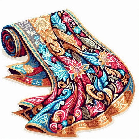 Illustration of hand-drawn Indian paisley scarf. Vector illustration