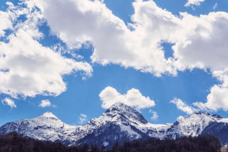 Beautiful snowy Aibga mountain peak cloudy winter scenic landscape