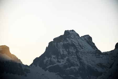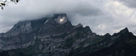Mountain landscape of the Swiss alps on a foggy day