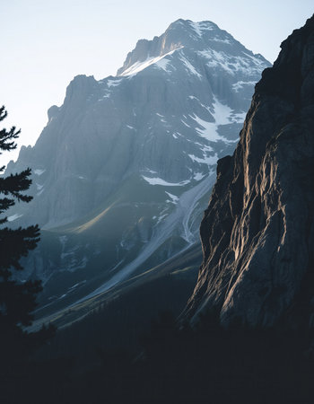Mountain landscape with snow-capped peaks in Dolomites, Italy