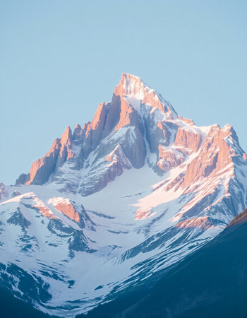 Mountain landscape with snow-capped peaks and blue sky.