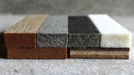 A visually appealing arrangement of colorful textured samples showcases various surfaces ideal for interior design and decoration projects.