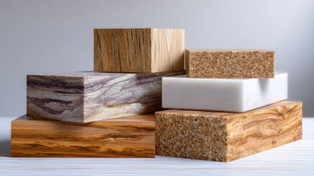 A stunning arrangement of different wood and composite blocks, showcasing their unique textures and colors, perfect for design inspiration in crafting projects.