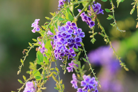 Purple flower and bee in the garden.Purple flower of Duranta erecta, Petrea volubilis