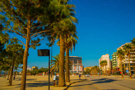 VLORA / VLORE, ALBANIA: The main road and palms. New promenade in the city center.