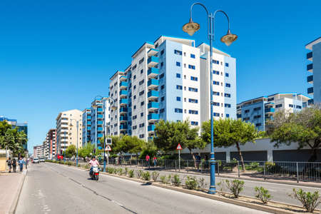 Gibraltar, UK - May 18, 2017: Modern high rise residential buildings in Gibraltar city, United Kingdom, Western Europe.