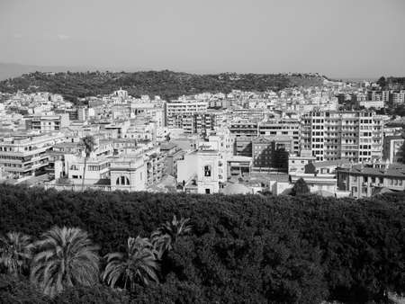 Aerial view of the city of Cagliari, Italy in black and white