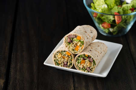 Vegan quinoa wraps with chickpea, kidney beans and pumpkin