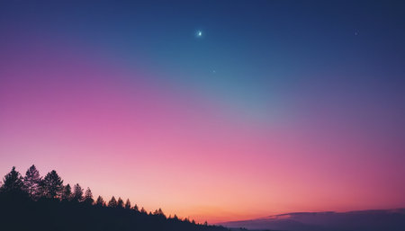 A gradient sky transitions from soft peach to gentle lavender, dotted with stars, offering a tranquil setting perfect for inspiring thoughts and narratives.