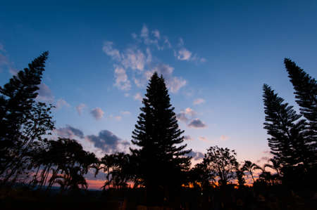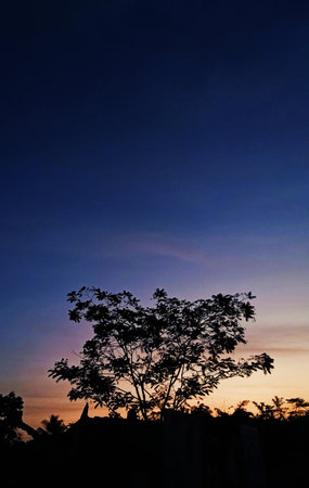 Beautiful views of blue and orange skies and shady tree silhouettes