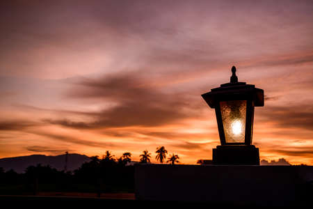 electric lamp on the background of the sunset sky