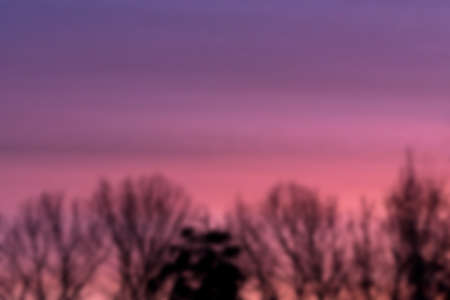 Blurred landscape. Defocused abstract photo of autumn forest at sunset. The beautiful gradient of the sky at sunset