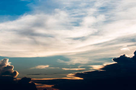 Beautiful dark black sky evening beauty and Clouds at sunset , dawn, the rays of the sun break through the clouds. Natural background