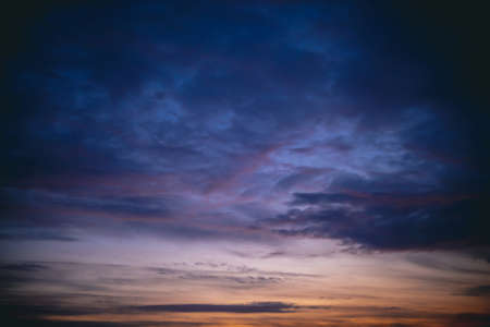 blue and orange shades of the sky at sunset, use for background