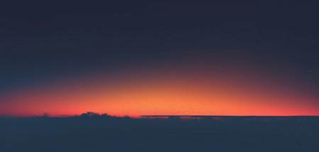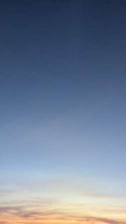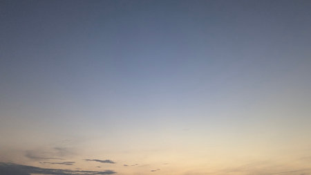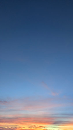 Clear blue sky in evening twilight with bright orange sunset light, simple beautiful calm tranquil minimalist landscape natural blue panoramic background