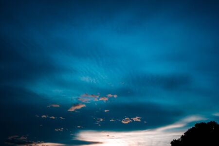 Dark blue sky on Twilight in the Evening Silhouette. Dramatic Sunset on Night,Amazing Dusk sky with sunlight nightfall, Majestic Nature Background.