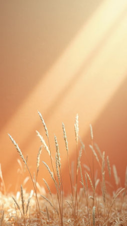 Savanna Grass Impressionism Abstract close-up of golden savanna grasses swaying in gentle breeze creating soft motion blur in warm monochromatic