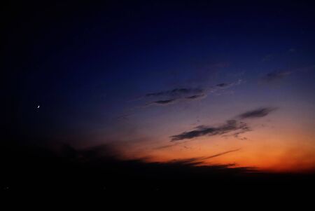 Dark blue sky on Twilight in the Evening Silhouette. Dramatic Sunset on Night,Amazing Dusk sky with sunlight nightfall, Majestic Nature Background.