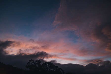 A breathtaking view of a twilight sky filled with vivid colors and interesting cloud formations. This serene dusk scene evokes feelings of calmness and wonderment.