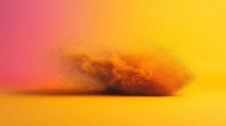 A captivating explosion of colorful powder creates a dynamic design effect against a bright yellow and pink background, showcasing vibrant art potential.