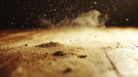 Dust particles sprayed by the wind. Sand on the ground or dust on the floor. Generative AI