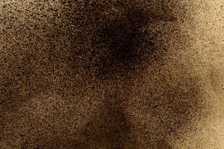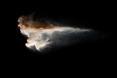 Brown colored sand splash.Dry river sand explosion isolated on black background.