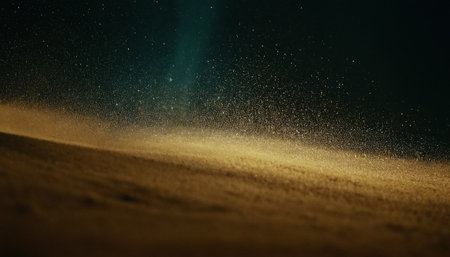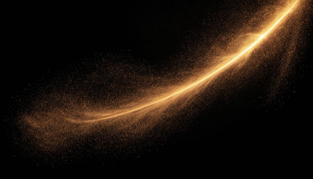A mesmerizing abstract image showcasing golden waves of fine dust and particles, creating a dynamic interplay of light and texture, evoking a sense of beauty and motion.