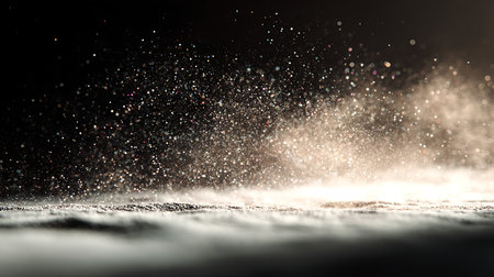 Shimmering silver dust creating an enchanting overlay texture in a dark environment
