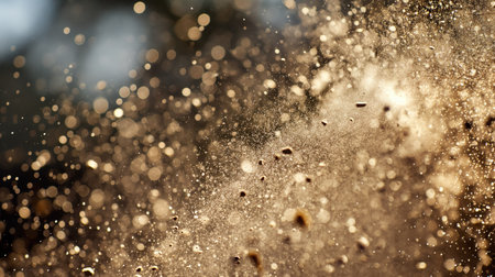 Dynamic close-up of dust and soil erupting from the ground, showcasing the raw energy of nature. Perfect for themes of agriculture, construction, and earth.