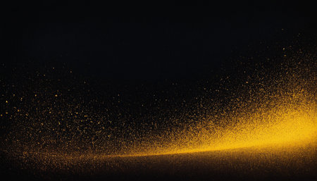 A striking image of a yellow dust explosion, set against a dark backdrop, showcasing dynamic movement, energy, and creative potential in the abstract.
