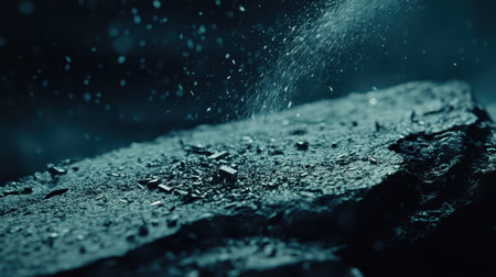 Angular dust texture with sharp light creates striking geometric design on dark backdrop