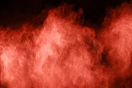 abstract red and black powder explosion on black background. Freeze motion.