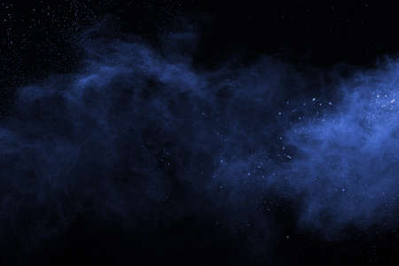 abstract blue powder splatted background,Freeze motion of color powder exploding/throwing color powder,color glitter texture on black background.