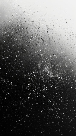 Dust abstract background. Scratched surface. White ash on black weathered grain texture.
