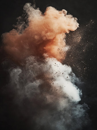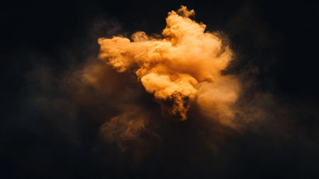 Captivating orange smoke explosion rises against a dark backdrop, providing an artistic and dramatic visual suitable for various creative projects.