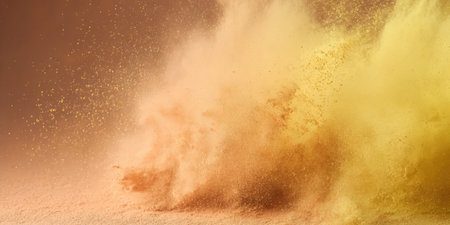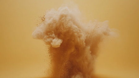 A stunning image capturing a brown dust cloud erupting against a soft yellow background, showcasing dynamic movement and abstract texture in photography.
