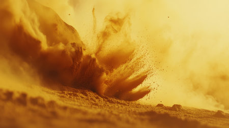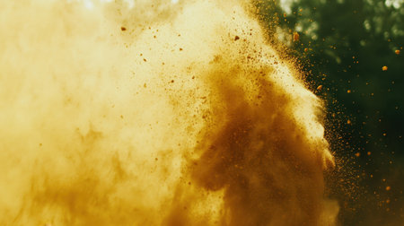 A captivating image showcasing a vibrant cloud of dust rising from the ground, creating an abstract and dynamic scene that highlights nature's raw beauty.
