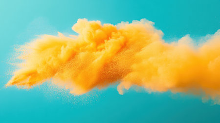 This captivating image features a bright yellow powder cloud set against a vibrant blue background, perfect for artistic projects and creative designs.