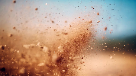 sand explosion in extreme close-up, with individual particles visible, created with generative ai